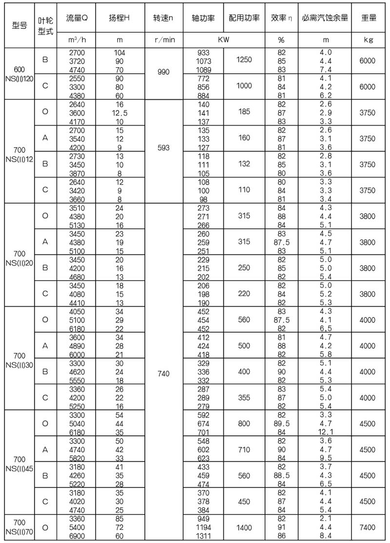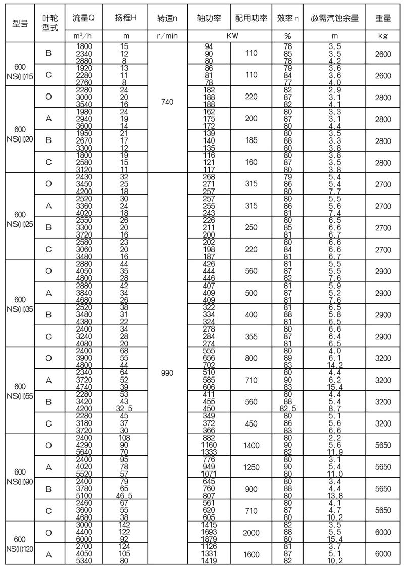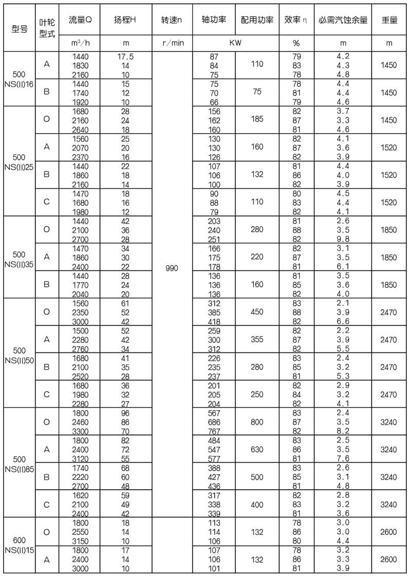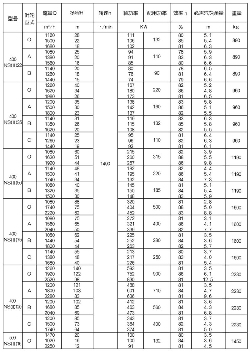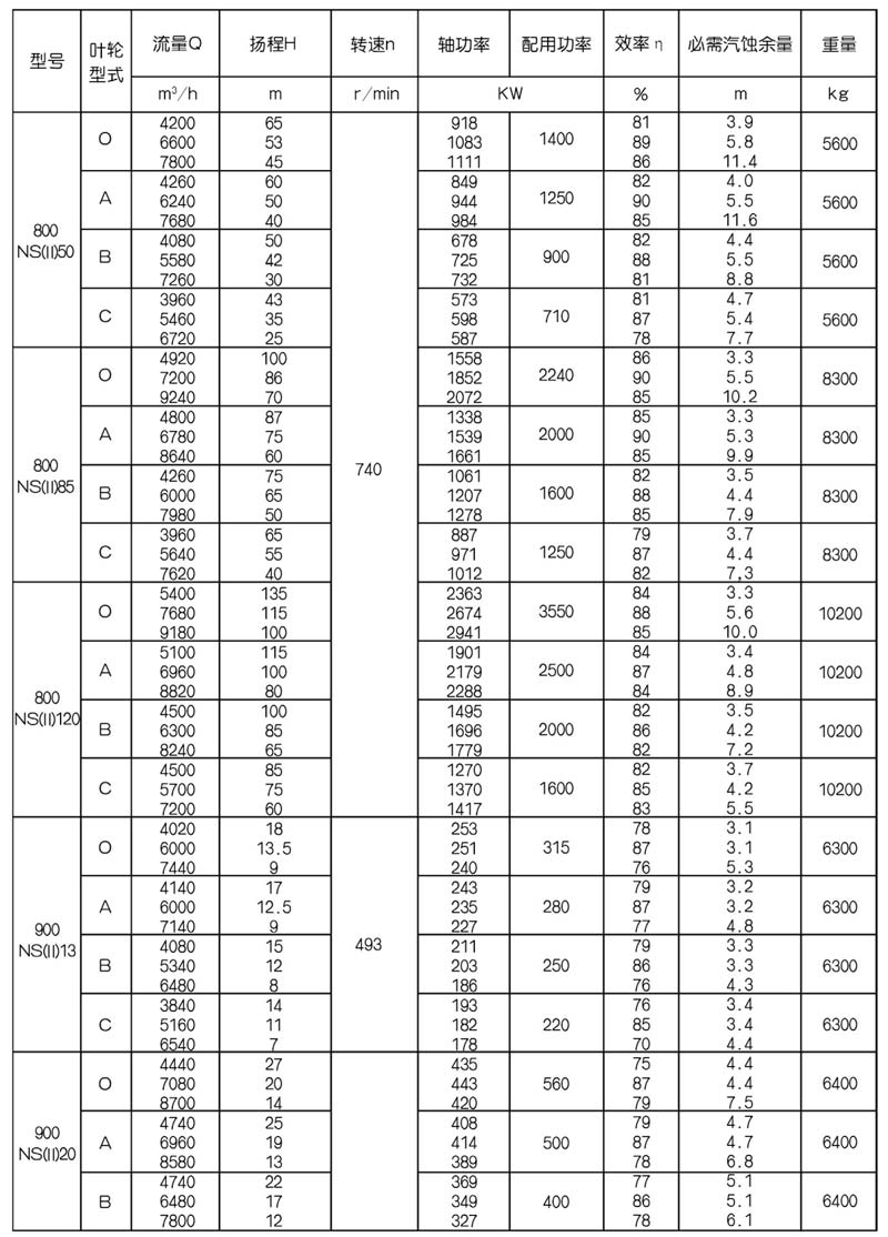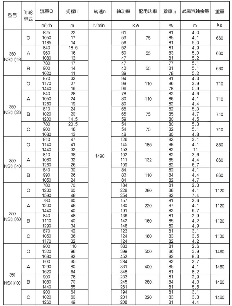 NS(Ⅱ)型泵具有很高的效率,在較寬的流量范圍內具有很高的運行效率,可以降低運行費用和選用功率較小的電機,是節能的高效率中開泵。