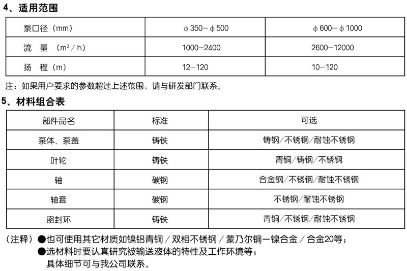 多種多樣的材料組合使NS(Ⅱ)型泵適用于更廣泛的領域,根據不同的要求,選擇不同的材料組合。