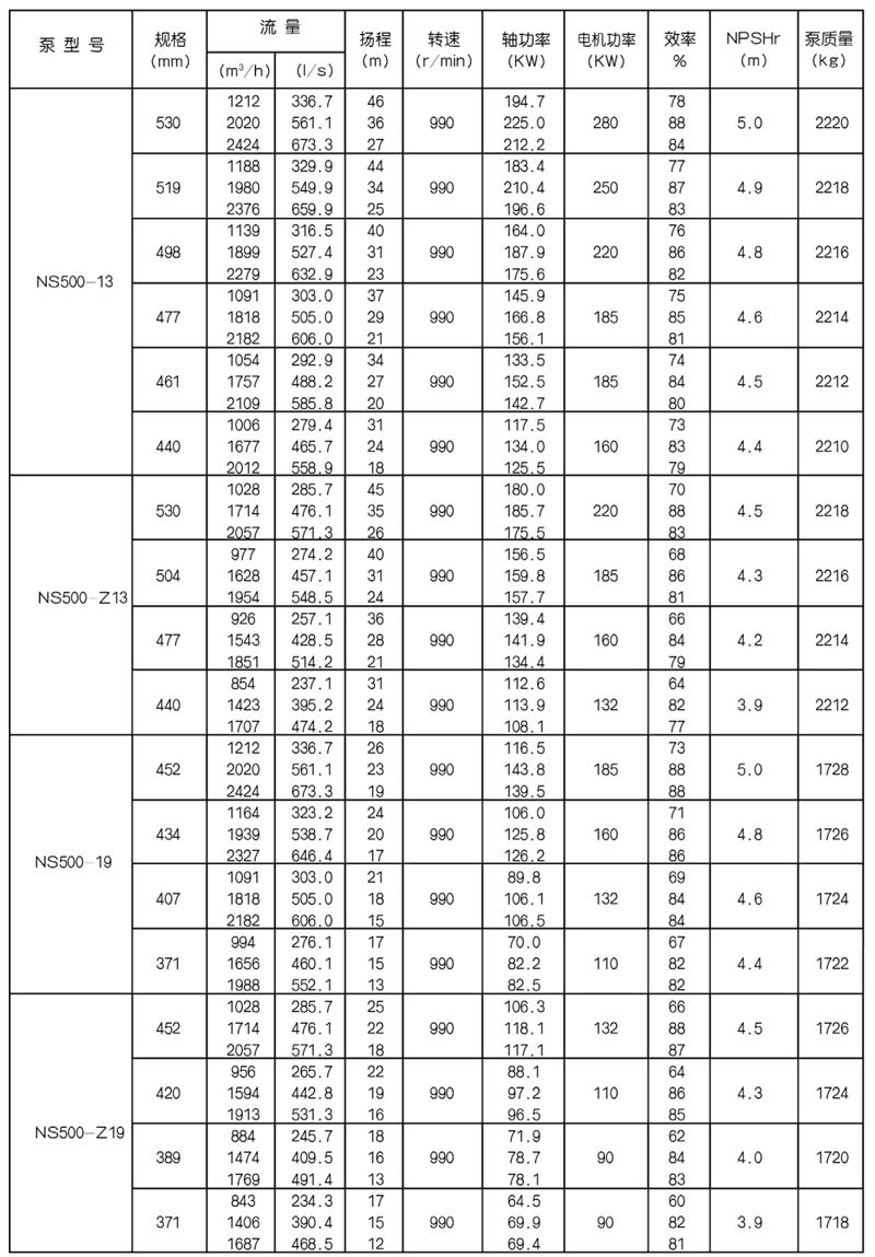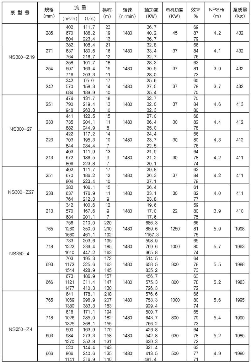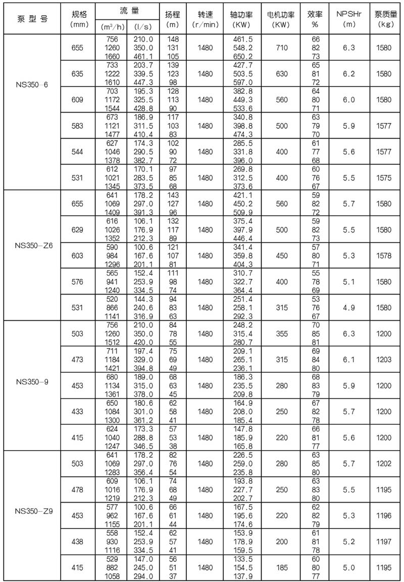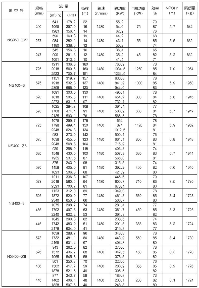 NS型單級雙吸中開式離心泵是我公司總結國內外優秀水力模型,廣泛吸收國內外同類產品先進的設計制造技術,根據國內市場實際需要開發的新型中開式雙吸泵。全系列泵型譜內各型號規劃更加科學合理,高揚程雙吸泵可以代替部分多級泵,大流量雙吸泵可以代替部分混流泵,優化匹配各水力尺寸,汽蝕和效率兼顧,滿足GB/T19762能效評價值,達到節能目標。結構再創新,運轉可靠維護方便、延長使用壽命,使中開式雙吸離心泵優秀泵型發揮更大效益。我公司目前生產的雙吸泵有46種型號,390個規格,處于節能和使用性能范圍考慮,一個型號有兩種葉輪,叫標準葉輪和窄葉輪,以更優性能滿足使用工況要求。本系列泵符合ISO2548C、GB3216、GB/T5657標準。