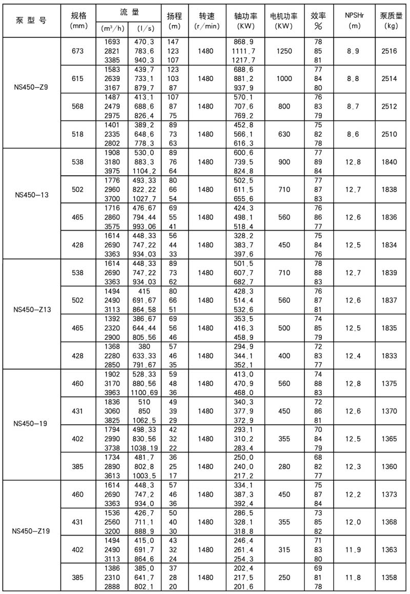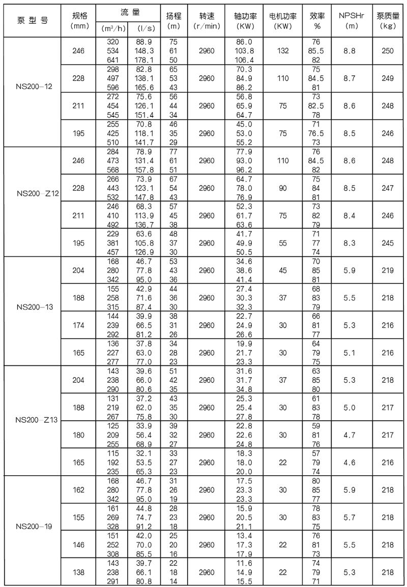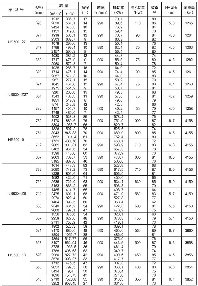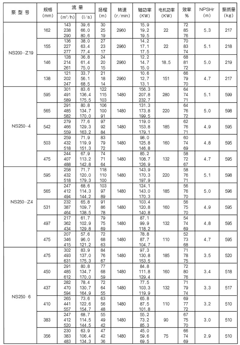 NS型單級雙吸中開式離心泵是我公司總結國內外優秀水力模型,廣泛吸收國內外同類產品先進的設計制造技術,根據國內市場實際需要開發的新型中開式雙吸泵。全系列泵型譜內各型號規劃更加科學合理,高揚程雙吸泵可以代替部分多級泵,大流量雙吸泵可以代替部分混流泵,優化匹配各水力尺寸,汽蝕和效率兼顧,滿足GB/T19762能效評價值,達到節能目標。結構再創新,運轉可靠維護方便、延長使用壽命,使中開式雙吸離心泵優秀泵型發揮更大效益。我公司目前生產的雙吸泵有46種型號,390個規格,處于節能和使用性能范圍考慮,一個型號有兩種葉輪,叫標準葉輪和窄葉輪,以更優性能滿足使用工況要求。本系列泵符合ISO2548C、GB3216、GB/T5657標準。