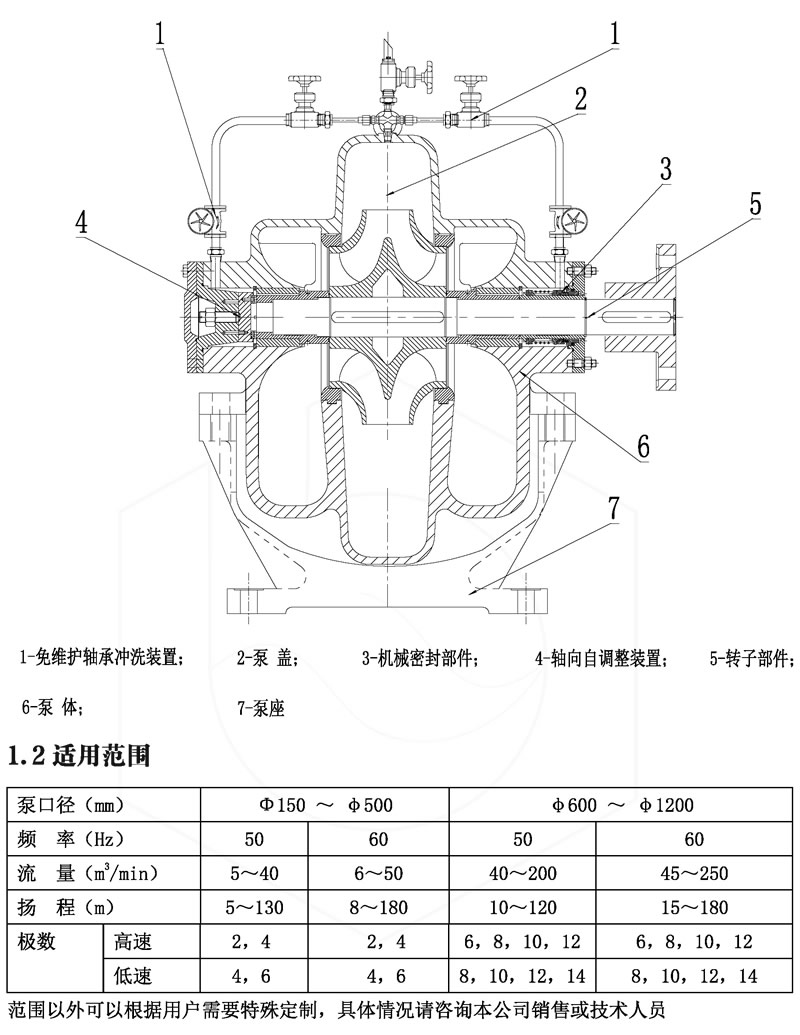 ES 型雙吸泵的軸承為位于泵體內部的自潤滑軸承來支撐轉子部件,其較大優點是免維護(即無需日常維護保養),并具有安裝空間小、運行平穩、效率高,運行及檢修費用更低。