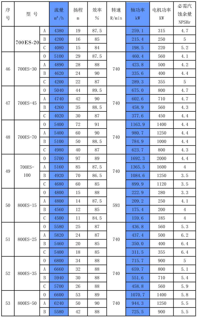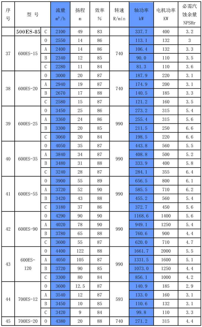 ES 型雙吸泵的葉輪是采用將兩個相同的單吸式葉片背對式放置的結構。該結構左右對稱,液體從吸入室對稱地流入葉輪,產生的軸向力互相抵消,平衡了軸向力。葉輪的流道用砂輪等工具打磨的非常光滑。葉輪葉片的厚度均勻,在進口邊打磨的非常薄,葉片的進口邊設計成圓弧形,有利于提高泵的抗汽蝕性能。