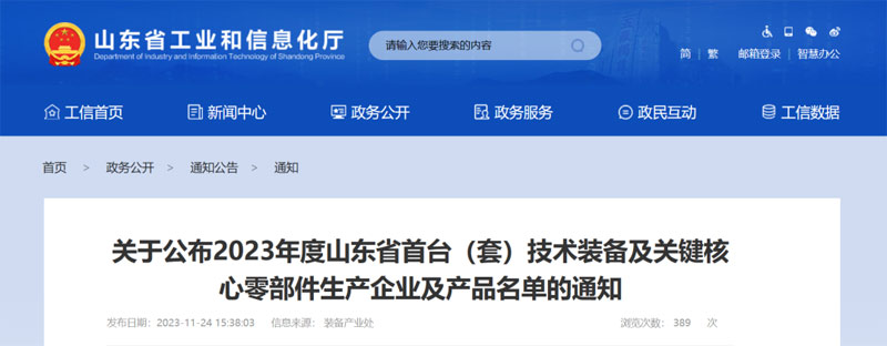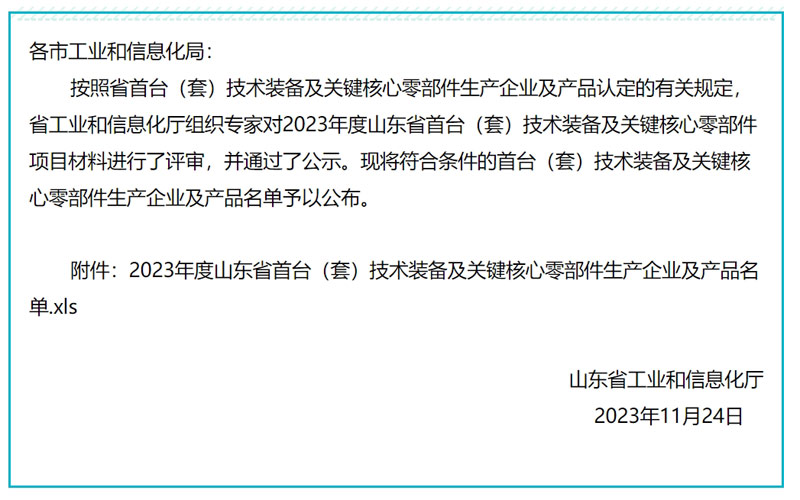 按照省首臺(套)技術裝備及關鍵核心零部件生產企業及產品認定的有關規定,經各市工業和信息化局推薦,專家評審等環節,擬將286種產品列入《2023年度山東省首臺(套)技術裝備及關鍵核心零部件企業及產品名單》