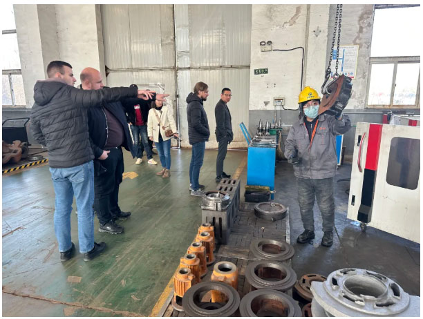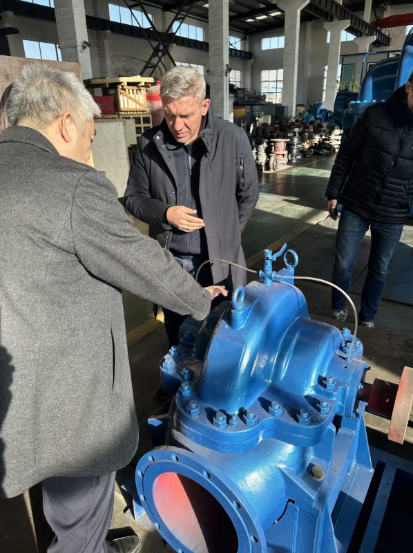?2023年11月24日,山東淄泵泵業有限公司迎來了一批來自俄羅斯的外賓,他們對該企業的水泵生產情況進行了實地考察。在參觀過程中,淄泵泵業董事長(魏復興)魏總與俄羅斯外賓以及NSⅡ新型泵合影留念。同時,魏總還向俄羅斯外賓介紹了各種型號水泵以及葉輪配件等相關情況。此外,帶領貴賓參觀了車間內的機械加工區域。